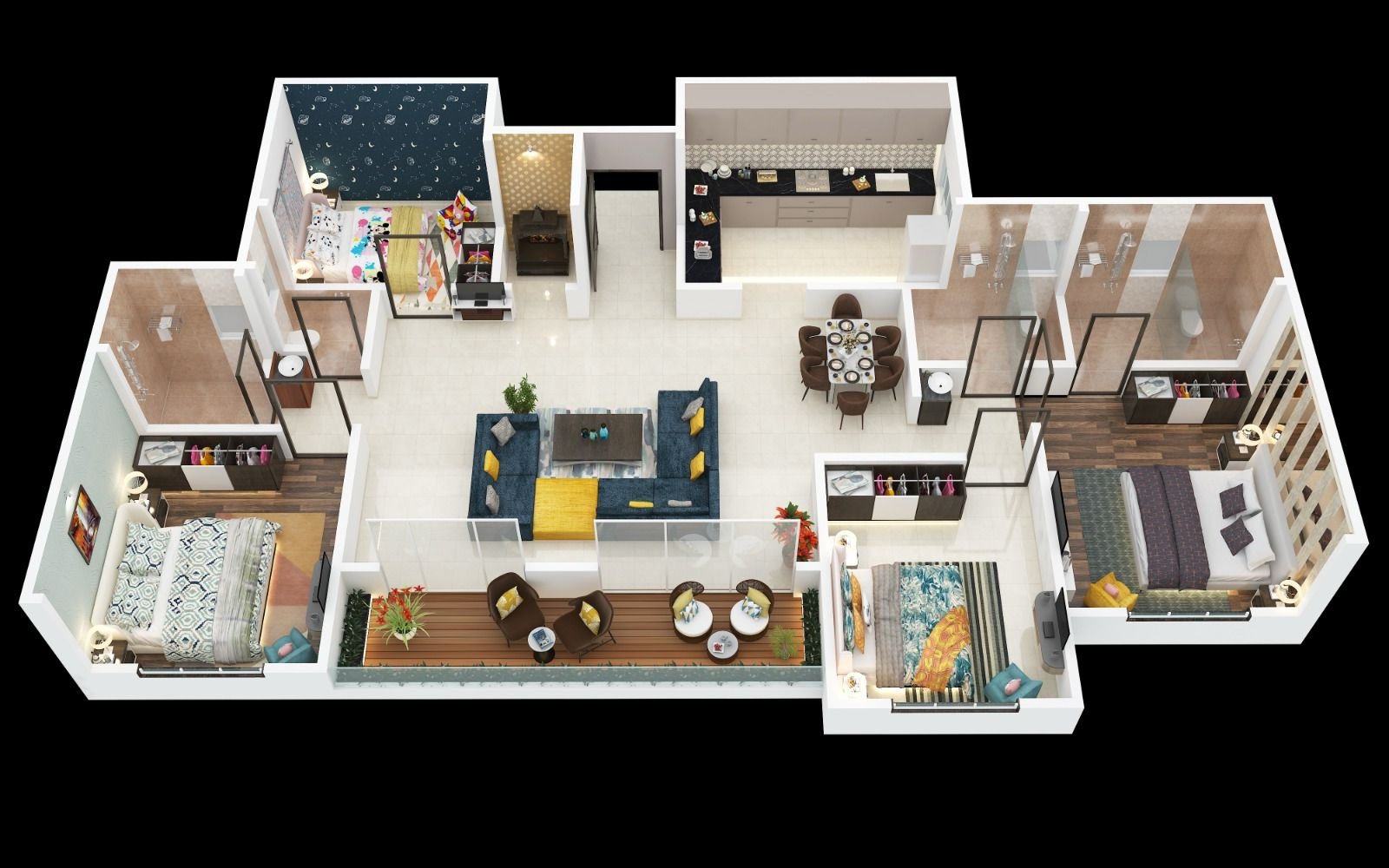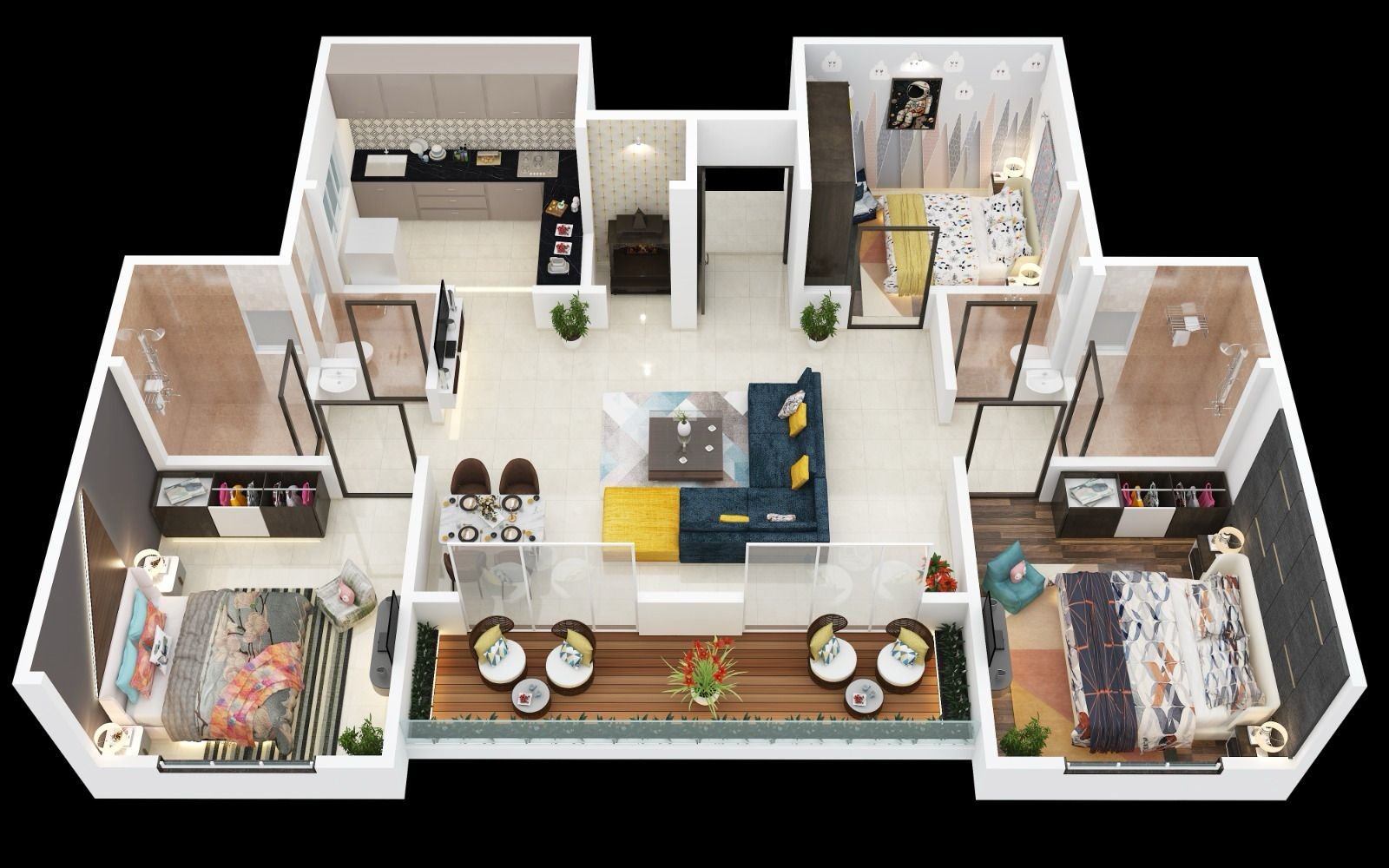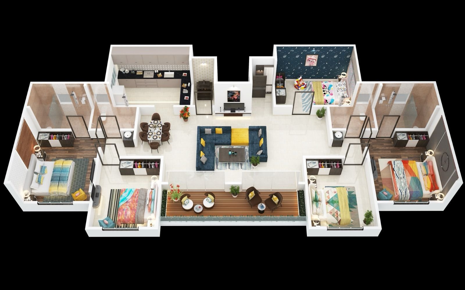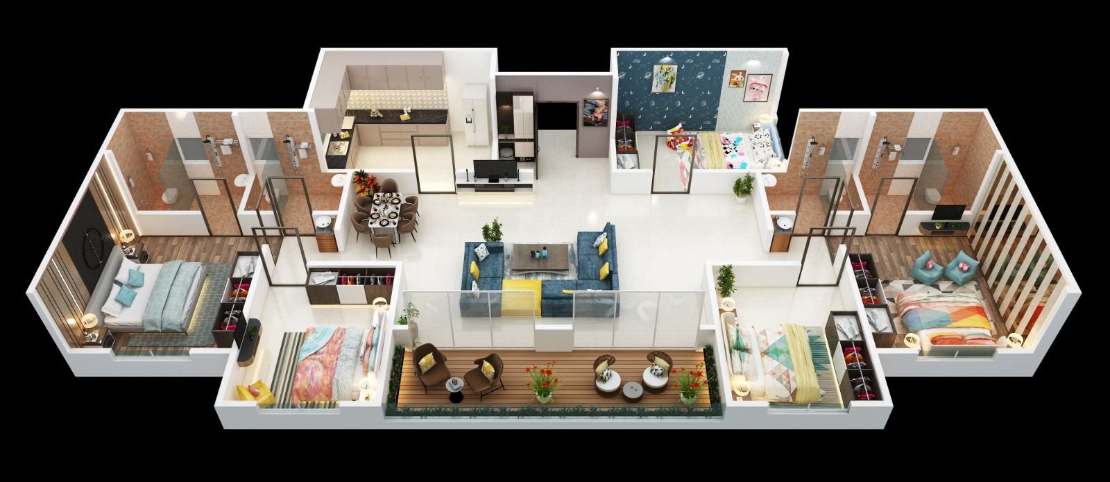 • All internal Flush doors with quality fittings and laminate on both sides.
